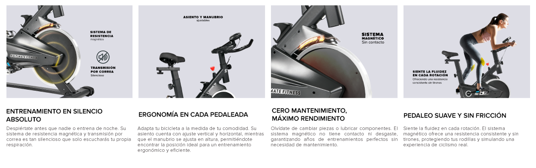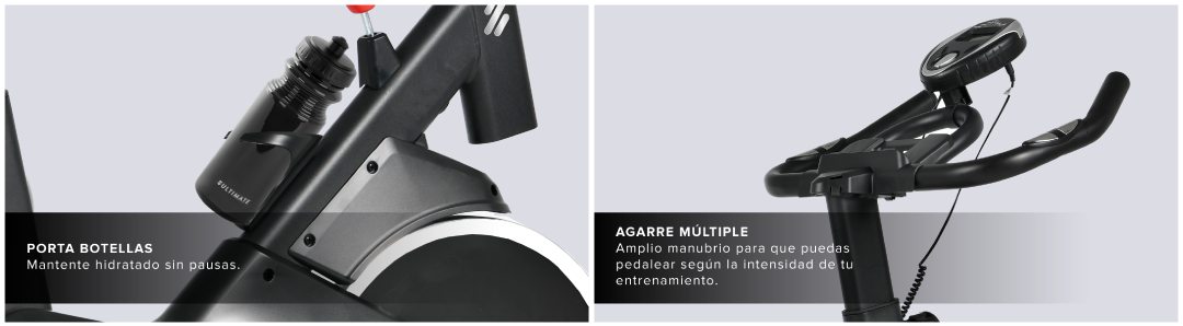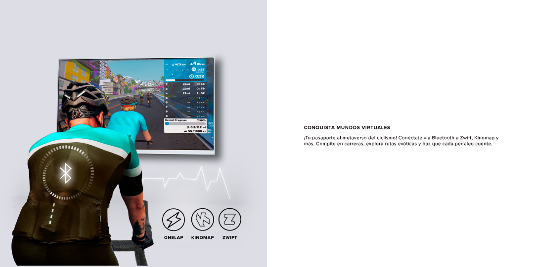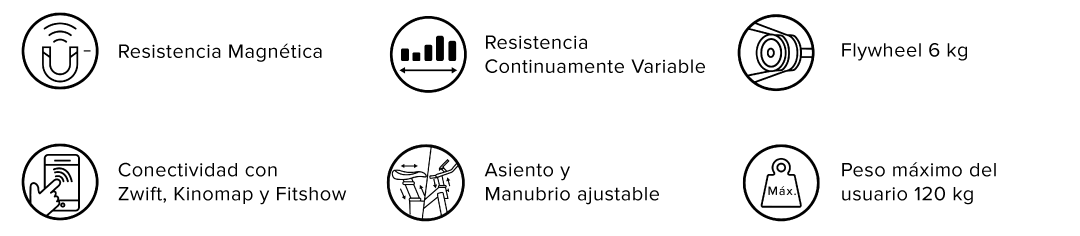 Conectividad Bluetooth para integrar tus apps favoritas como Fitshow, Kinomap y Zwift, pedales estables y ajuste ergonómico de asiento y manubrio, esta spinning combina rendimiento y confort en un diseño compacto y elegante.