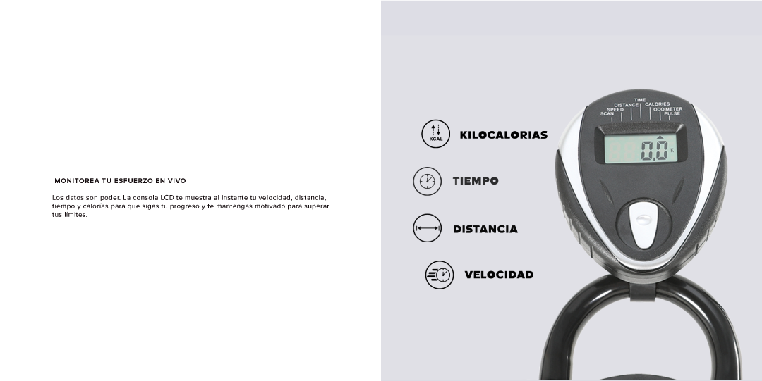 Su resistencia magnética ajustable y volante equilibrado permiten entrenamientos progresivos, mientras que la consola LCD te mantiene al tanto de calorías, distancia, tiempo, velocidad y pulso.