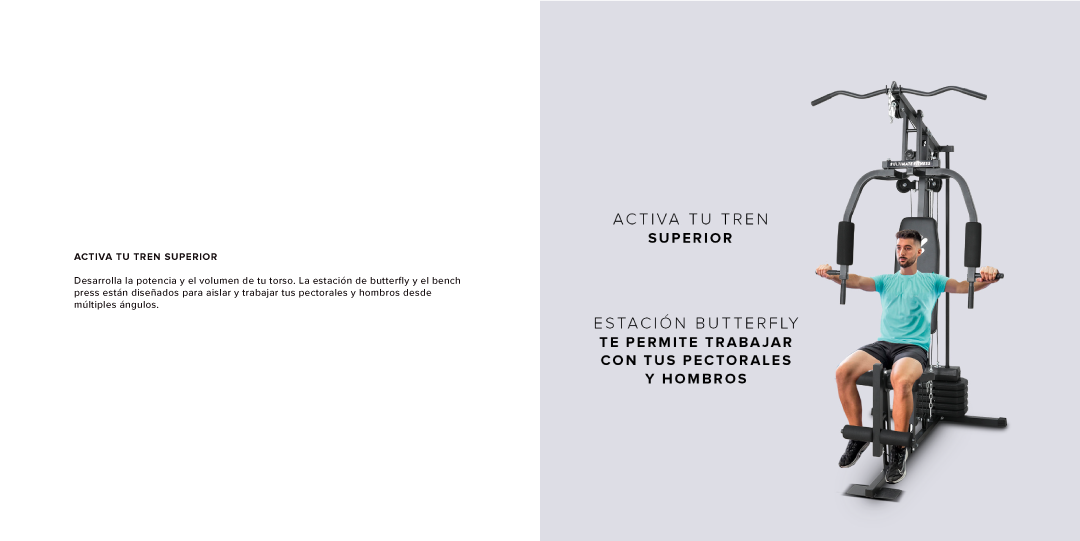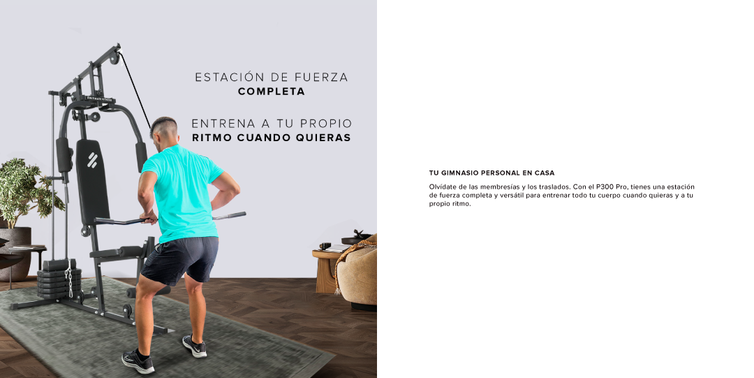 Transforma cualquier rincón de tu casa en tu propio centro de fuerza con el Home Gym P300 Pro. Diseñado para un entrenamiento de cuerpo completo, te permite trabajar pectorales, espalda, hombros y brazos gracias a sus versátiles estaciones de butterfly, bench press y poleas altas y bajas.