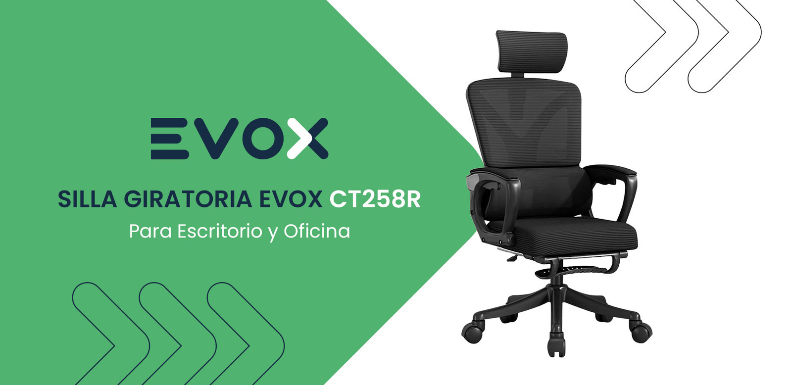 SILLA GIRATORIA EVOX CT258R CON REPOSAPIÉS PARA ESCRITORIO Y OFICINA