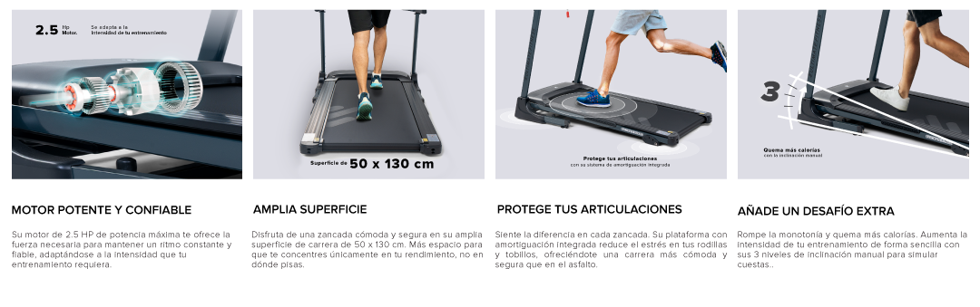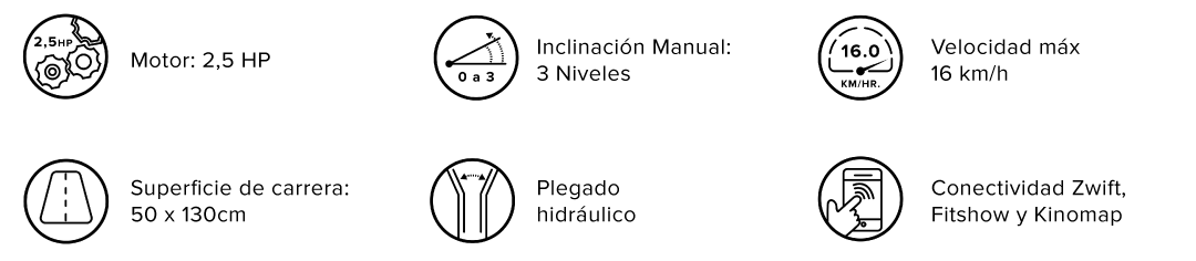 - Superficie de carrera: 50 x 130 cm.
